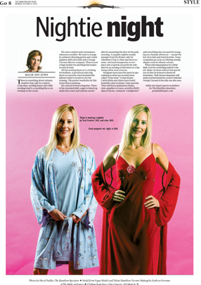 It’s not every day you see Twyla in lingerie, but here’s your chance. Donning the front page, the cover page, and the fashion section of The Hamilton Spectator, Kellie Zupet, fashion editor, and Sheryl Nadler, photographer, help make that a reality for everyone to see. Check it out…it’s probably your only chance to see her in bedroom attire.